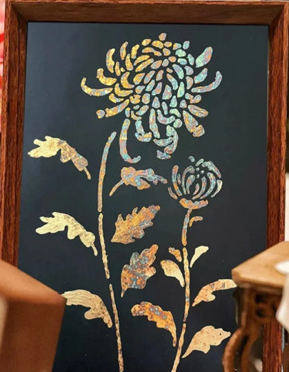 非遗烧箔画,以古法烧箔为墨,以匠心运笔为魂,在指尖轻覆、点染、勾勒之间,让流光金韵,凝于一纸一画。