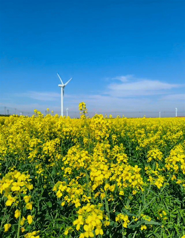 这片油菜花地面积达到了4000亩, 这是一片集风车大海油菜花花海一起的美景,每个角度都是一幅画,宛如一片世外桃源。