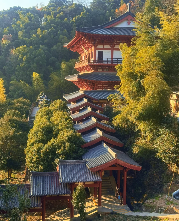 置身于寺庙楼宇之间,就会被满眼的绿色包围,目光所及皆是大自然赋予的宁静与美好,每一次呼吸都仿佛能洗净心灵的尘埃。