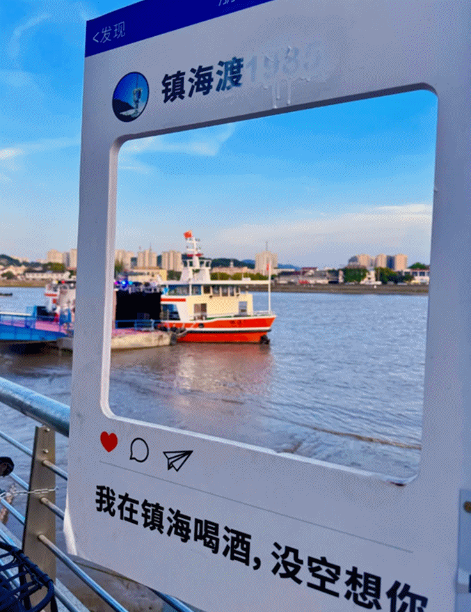 “镇海渡”幕墙下的驻足,站在那里,仿佛还能听见往昔售票窗口的喧闹声 。甬江渔船与对岸红联渡,江风习习,正好捕捉到对岸“红联渡”的灯塔。